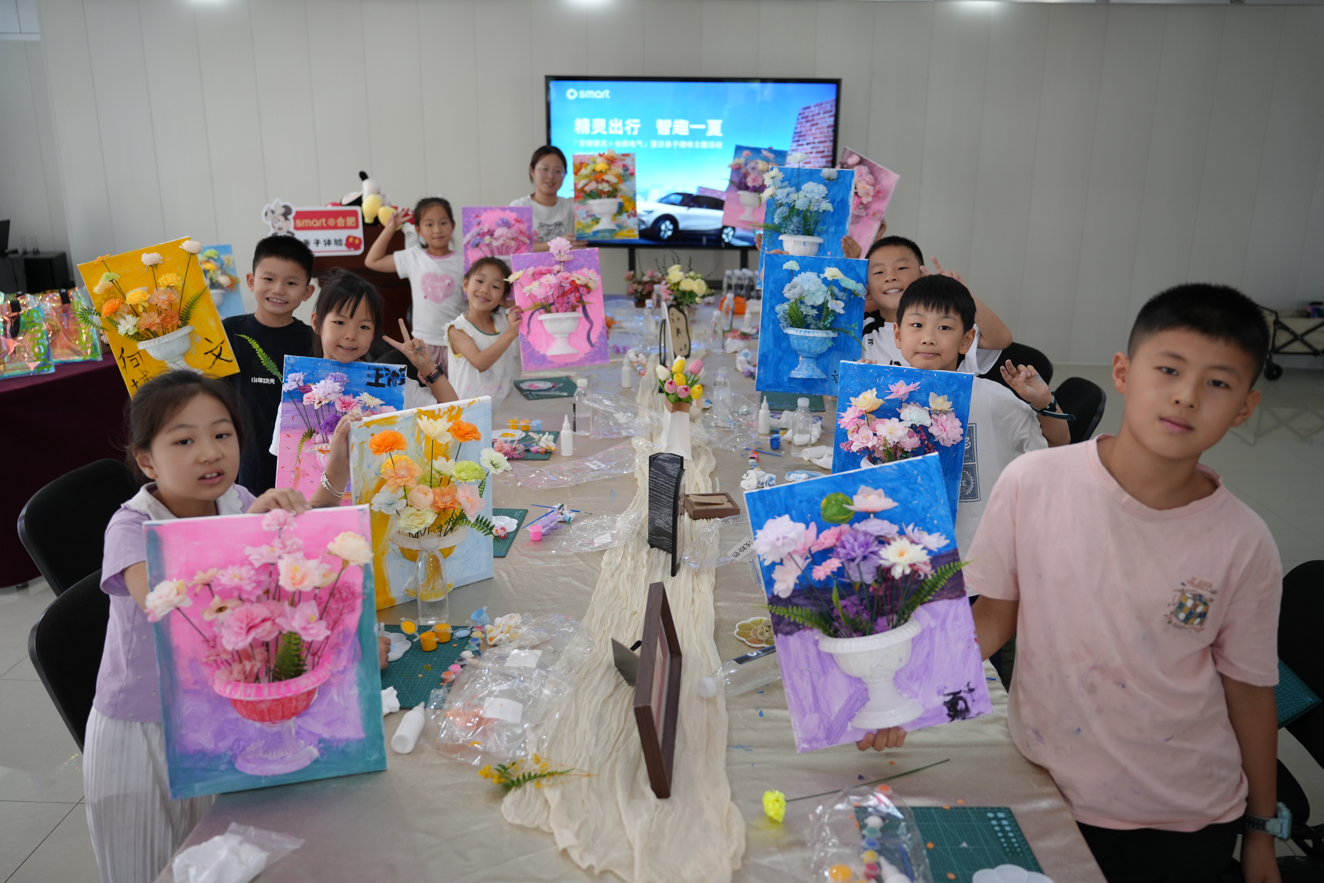 7月18日上午,一场充满艺术气息的“半壁插画油画DIY”活动在galaxy银河电气欢乐启幕。此次活动由galaxy银河电气携手Smart汽车安徽睿杰店共同策划,专门为“凯二代”打造的暑期艺术活动。活动现场暖意融融,孩子们热情高涨。在老师的指导下,他们手握画笔,充分发挥想象力与创造力,每一幅作品都充满童真与灵气,尽显孩子们的艺术天赋。孩子们在亲手创作的过程中,不仅体验到油画艺术的独特魅力,更在轻松愉悦的氛围中收获了满满的成就。