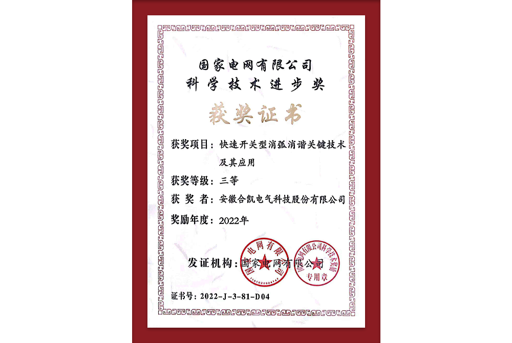 国家电网科技进步三等奖