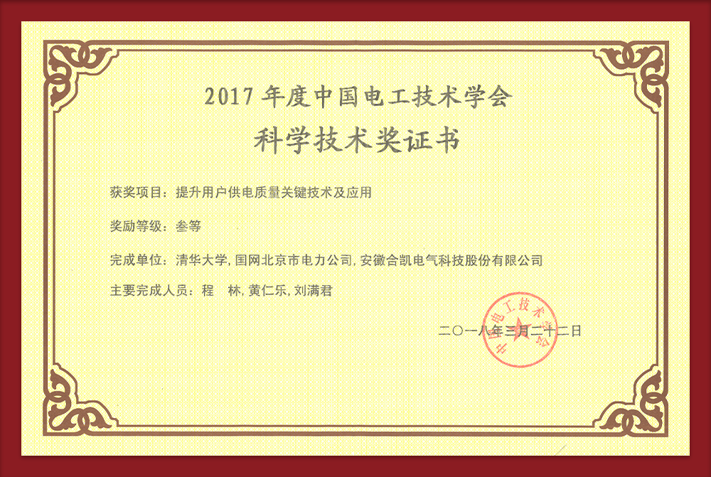 中国电工技术学会三等奖