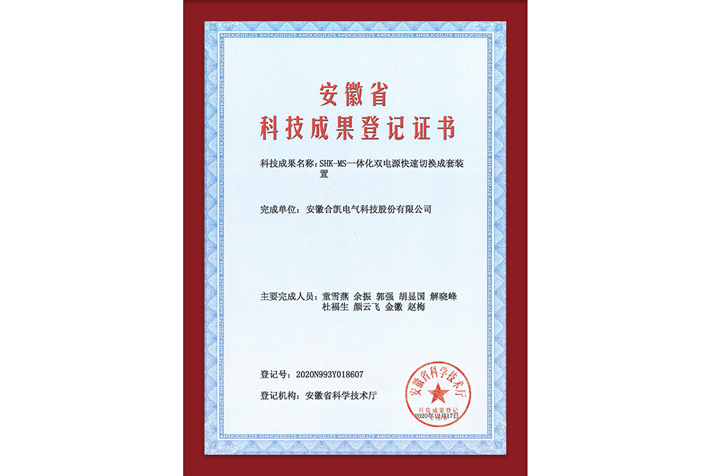 科技成果-SHK-MS一体化双电源快速切换成套装置