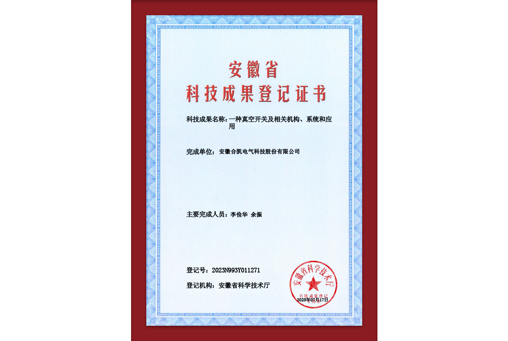 开关消弧科技成果证书