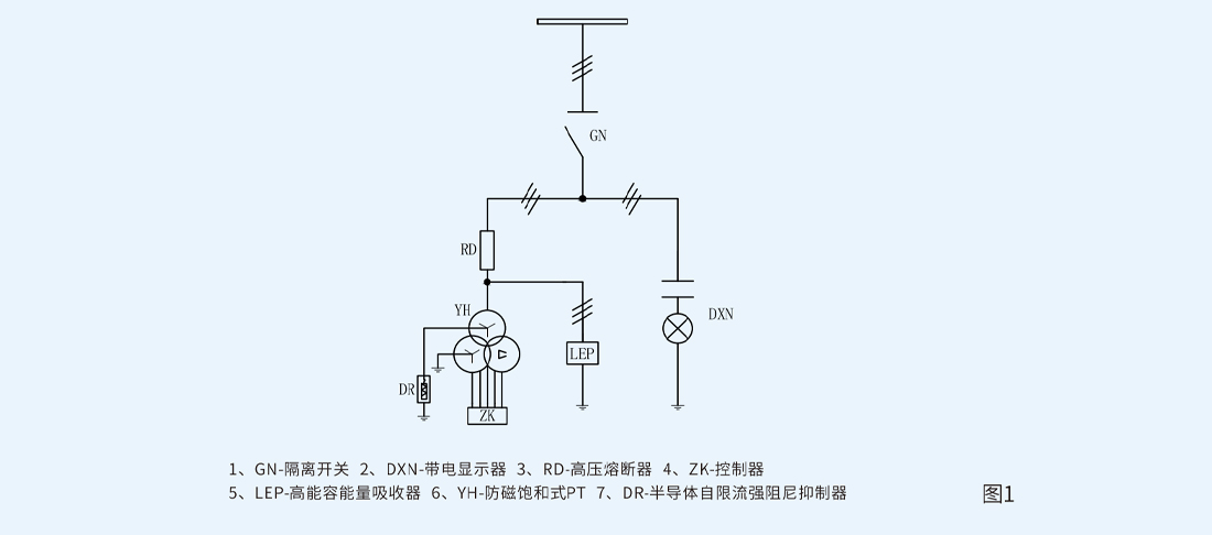 当系统出现谐振时,本装置根据系统谐振的不同频率实现快速消除谐振,并输出相应的开关量接点,用于报警,并快速实现液晶显示。